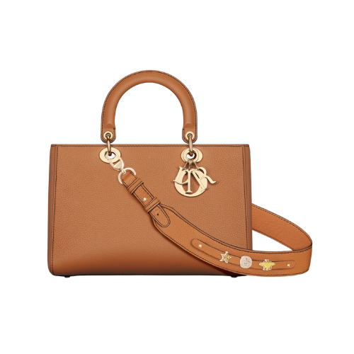 Novità dell’Estate 2024, questa borsa Lady D-Sire My ABCDior trae ispirazione dall’inconfondibile eleganza del modello Lady Dior. Ripensata in stile casual per un look metropolitano, è realizzata in pelle di toro granulata brandy scuro leggera, morbida al tatto ed estremamente resistente. Caratterizzata da dimensioni medie, è impreziosita e valorizzata dai ciondoli D.I.O.R. in metallo con finitura color oro pallido. È dotata di una tracolla personalizzabile con l’aggiunta di ornamenti simbolici, e può essere portata a mano o crossbody.