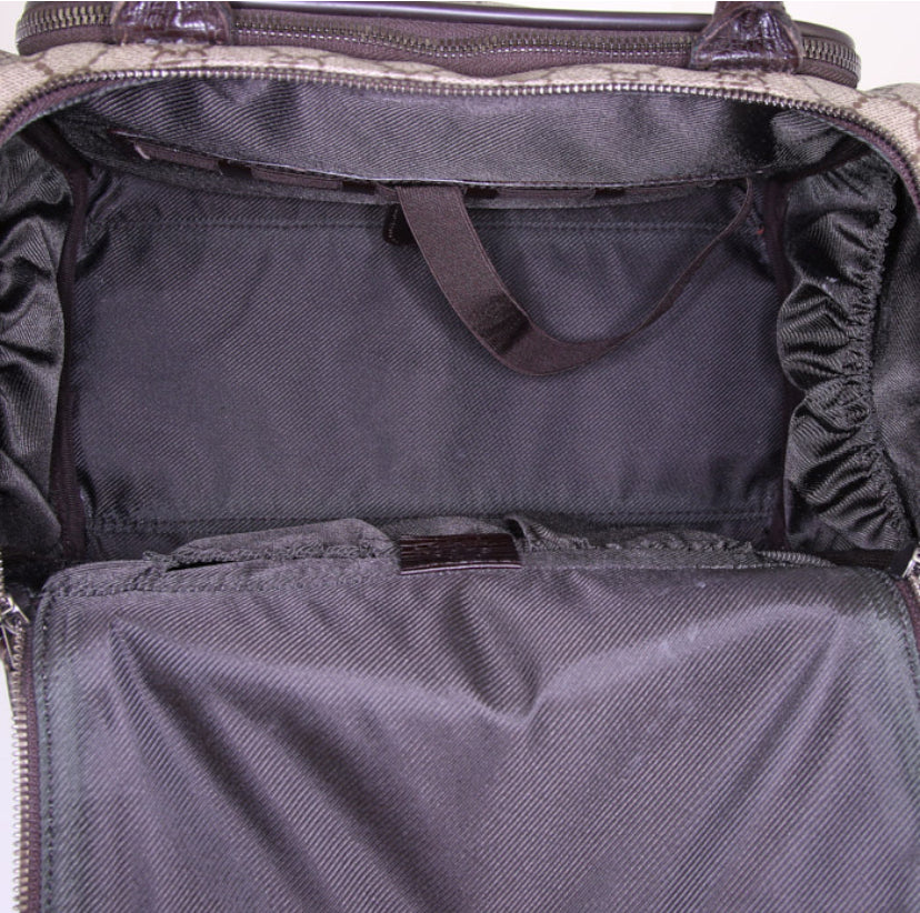 Borsa da viaggio Gucci piccola in tela monogram beige e pelle marrone