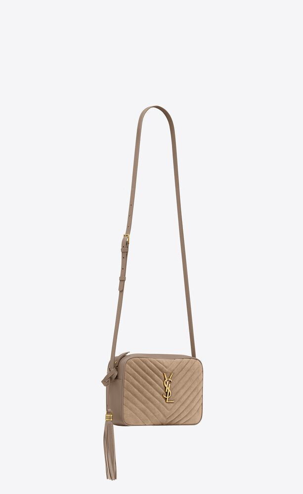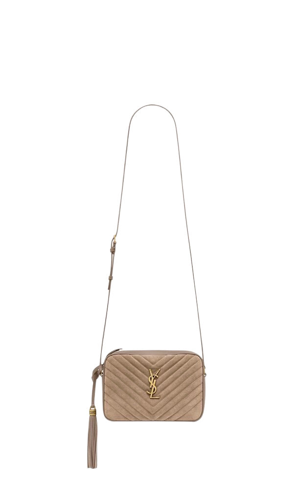 CAMERA BAG IN PELLE E SUÈDE CON ICONICHE IMPUNTURE TRAPUNTATE CHEVRON.LA BORSA È ORNATA CON CASSANDRE E DOTATA DI UN POMPON IN PELLE REMOVIBILE. LA TRACOLLA REGOLABILE CONSENTE DI PORTARLA A SPALLA O A TRACOLLA.