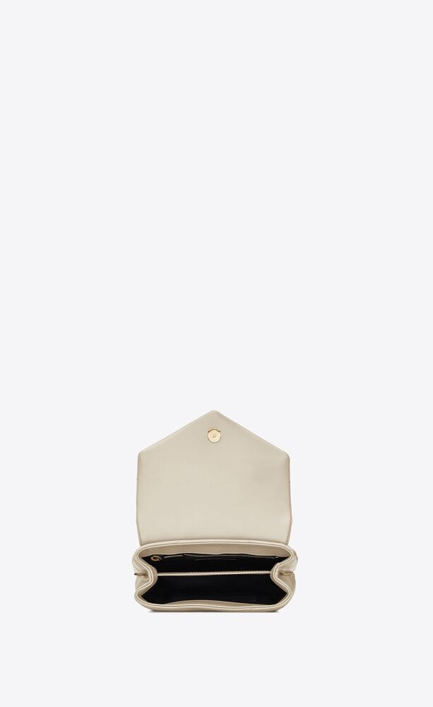 LA LOULOU DECLINATA IN VERSIONE MINI, ORNATA DELL’ICONICO MOTIVO CON IMPUNTURE TRAPUNTATE CHEVRON. LEGGERA E FUNZIONALE, OFFRE DUE SCOMPARTI. LA TRACOLLA IN PELLE REGOLABILE È AMOVIBILE, PER UNA PORTABILITÀ SU MISURA.