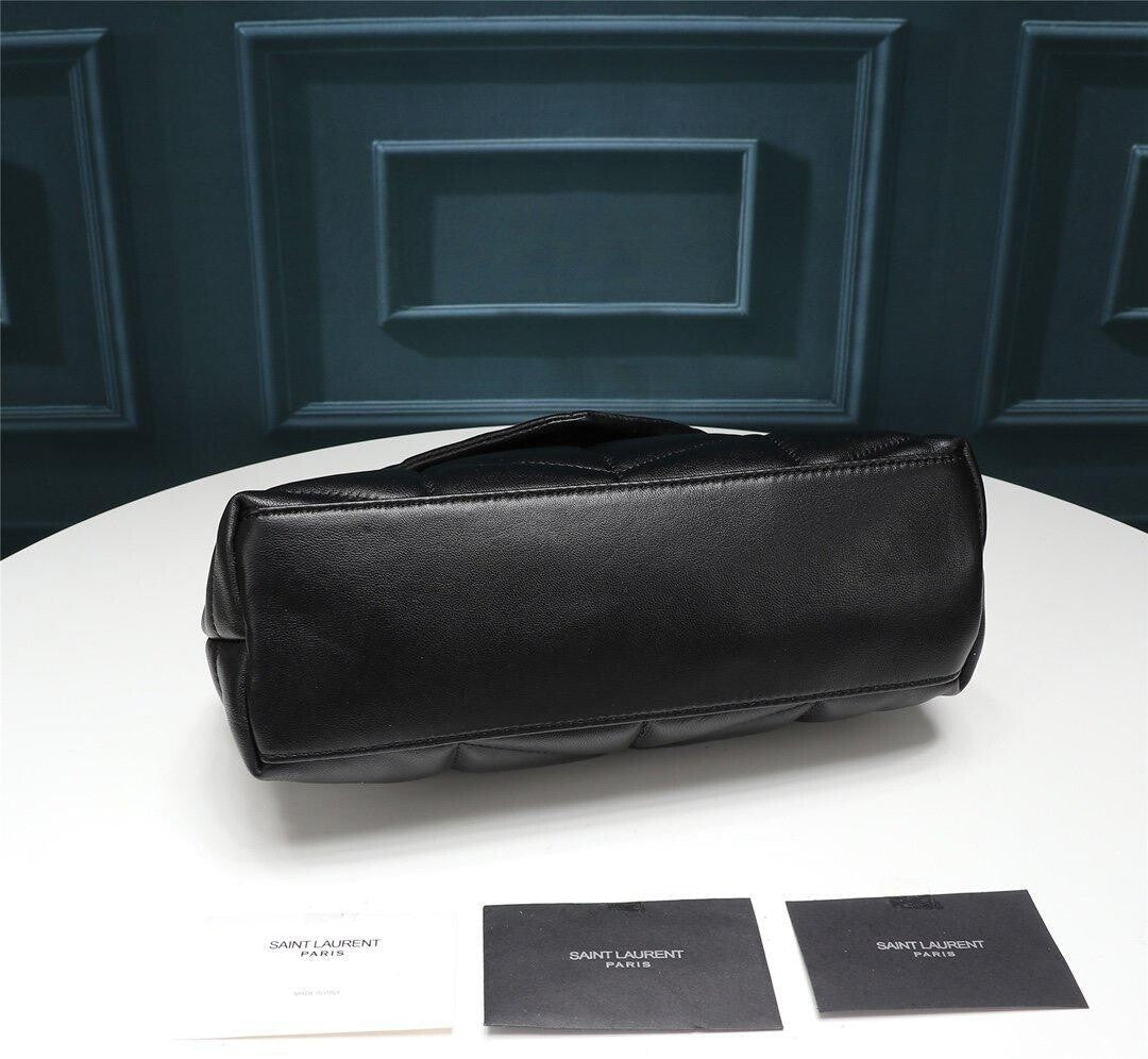 Borsa MONOGRAM SAINT LAURENT MINI, decorata con iniziali YSL in metallo e caratterizzata da tracolla in pelle a catena.